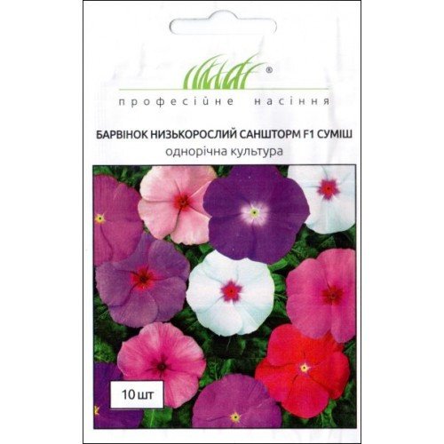 Барвінок (Катарантус) низькорослий СанШторм F1 суміш 10 шт, Професійне насіння – компактна, ранньоквітуча, однорідна серія катарантуса. Висота 20-25 см, ширина 25-30 см. Можна вирощувати в умовах високої щільності культури.
