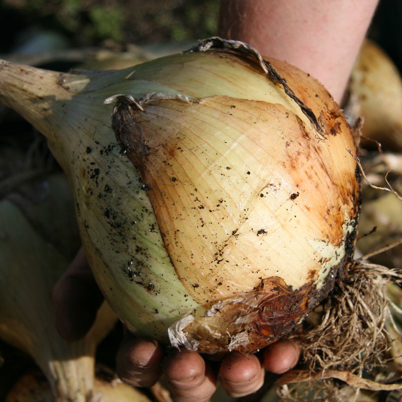 Цибулини: 300–500 г, округло-овальної форми (окремі екземпляри до 800 г)