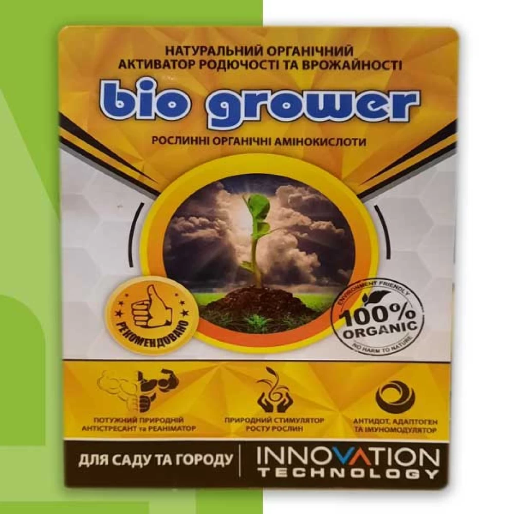 Bio Grower (Біо Гровер) — іноваційний продукт серед регуляторів та активаторів росту рослин, містить натуральні природні компоненти, без синтетичних домішок.