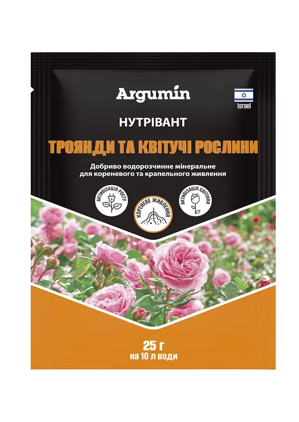 Розчиніть 25 г добрива у 10 л води та полийте рослини під корінь у розрахунку 1-2 л розчину на рослину під час росту, при формуванні бутонів, після цвітіння.