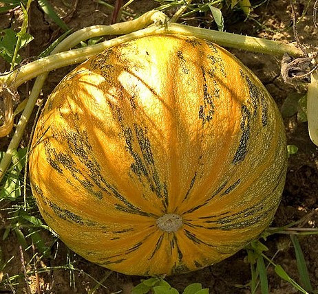 Період від сходів до збирання плодів становить 110-120 днів. Плід округло-подовжений, зі смугастою оранжево-зеленою або сіро-зеленою поверхнею.