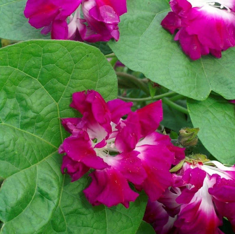 Оригінальна однорічна в’юнка рослина. Квіти великі, махрові, яскраво-рожеві з білим центром, діаметром близько 8 см. Квітки залишаються відкритими набагато довше, в порівнянні зі звичайними сортами. Довжина стебла – 200см.