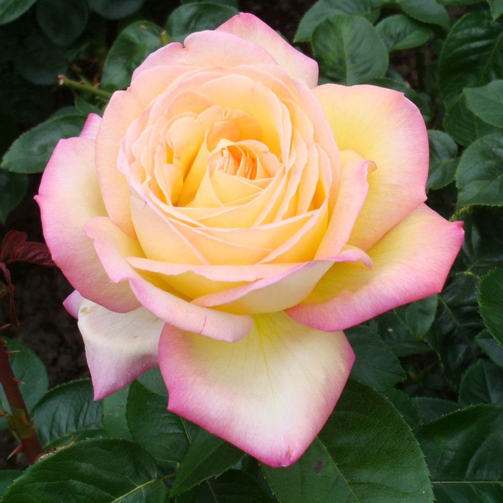 Троянда Gloria Dei — легендарний сорт чайно-гібридних троянд, який вважається одним із найвідоміших у світі. Великі квітки поєднують ніжні жовто-кремові відтінки з рожевим обрамленням пелюсток, створюючи дуже елегантний вигляд. Кущ сильнорослий, рясно цвіте хвилями протягом сезону та відзначається хорошою стійкістю до хвороб. Глорія Дей — класика, яка завжди залишається актуальною і чудово підходить для тих, хто хоче перевірений часом сорт із розкішними квітами.
