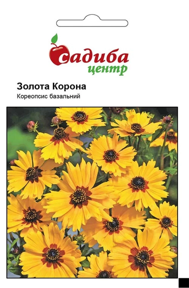 Кореопсис Золота корона – однорічна квітка висотою до 50 см. Квіти яскравого жовтого кольору з темно-бордовим центром цвітуть довго й рясно з липня по жовтень.