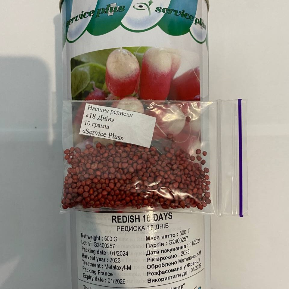 Редис 18 днів, 10 г. (Власне фасування з оригінального упакування).