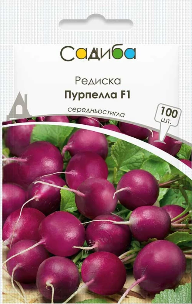 Редис Пурпелла F1 – cередньостиглий (25-28 днів) урожайний гібрид для всесезонного вирощування у відкритому ґрунті. Рослина з помірно розвиненим листовим апаратом формує коренеплоди округлої форми пурпурного забарвлення, вагою до 25 г. М’якуш білий, хрумкої текстури, без порожнеч,приємного смаку без гіркоти.