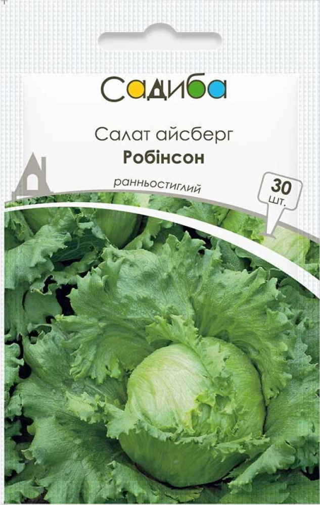 Робінсон – це сорт салату типу айсберг. Качани округлої форми, темно-зеленого забарвлення, масою близько 600 грам. Цей сорт стійкий до стрілкування, несправжньої борошнистої роси, вершинних опіків, його можна вирощувати в несприятливих умовах.