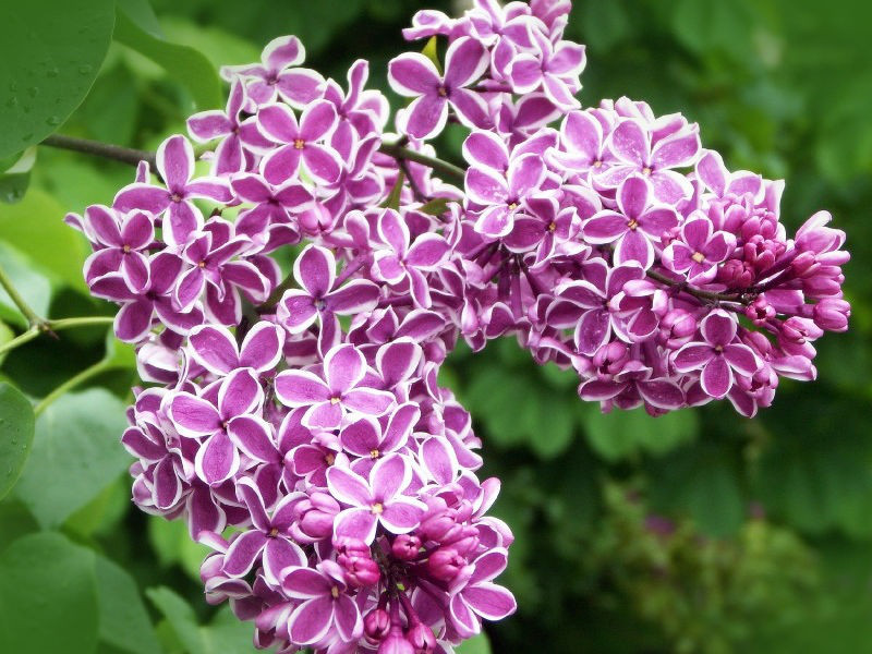 Бутони пурпурного забарвлення. Квіти прості, діаметром до 2,2 см, мають насичено-бузкове забарвлення з контрастною білою окантовкою. Виділяють ніжний, аромат, що не дурманить. Суцвіття не щільні, до 20 см в довжину. Цвіте не надто рясно.