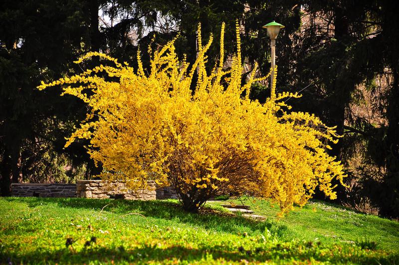 Цвітіння: Раннє, з березня–квітня до травня, покриває кущ суцільним жовтим кольором