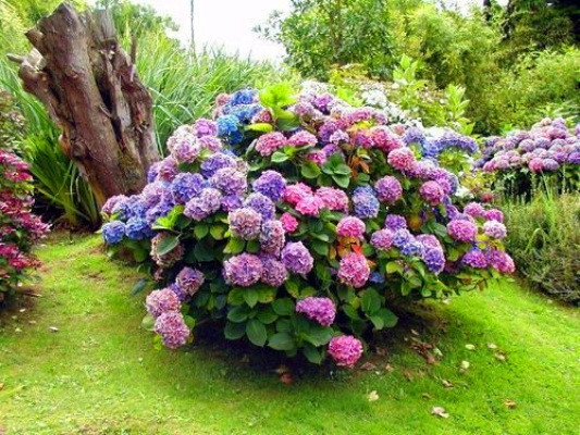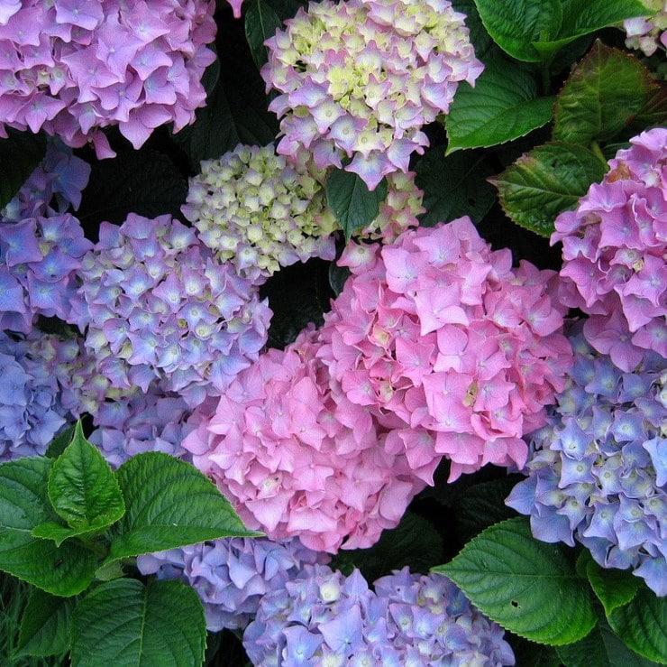 • Колір квітки: Різнокольорові суцвіття на одному кущі: зелено-білий, рожевий, рожево-блакитний, фіолетово-блакитний
