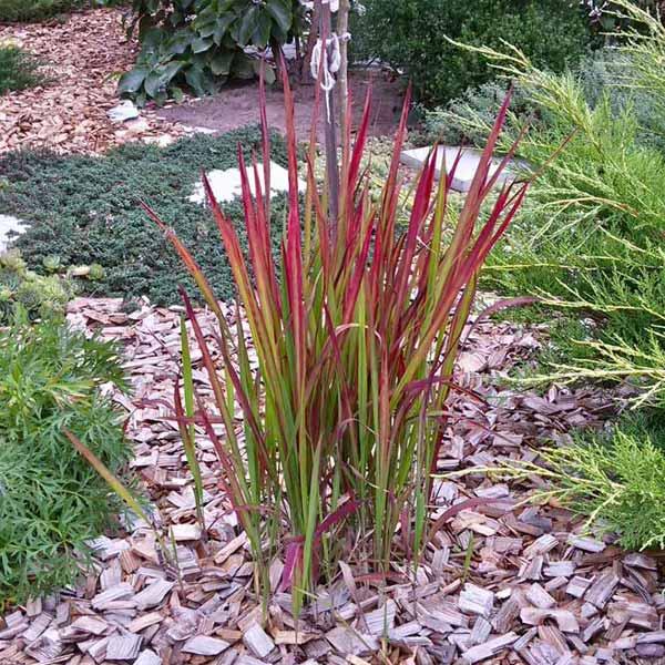 Імперата «Ред Барон» — це одна з найяскравіших декоративних трав, яку неможливо не помітити завдяки її вогняно-червоному забарвленню. На початку сезону листочки мають зелену основу з червоними кінчиками, але ближче до осені вони повністю спалахують інтенсивним рубіновим кольором. Ця трава росте вертикальними кущиками середньої висоти, тому ідеально підходить для створення контрастних плям на клумбах або вздовж доріжок. Вона зовсім не вибаглива у догляді, але найбільше розкриває свій колір саме на сонячних місцях, де сонце буквально «підпалює» її листя. Це чудовий вибір, якщо ви хочете додати саду динаміки та яскравих фарб, що триматимуться до самих морозів.