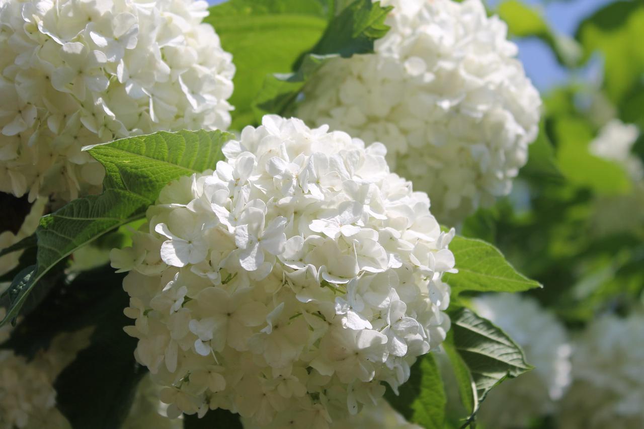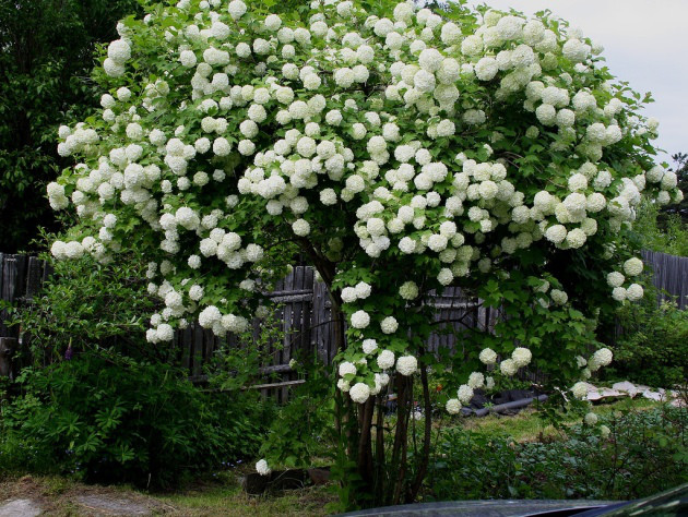Квіти: Білосніжні, кулясті «снігові кулі» діаметром 12–15 см, махрові, кількість на чагарнику до 400
