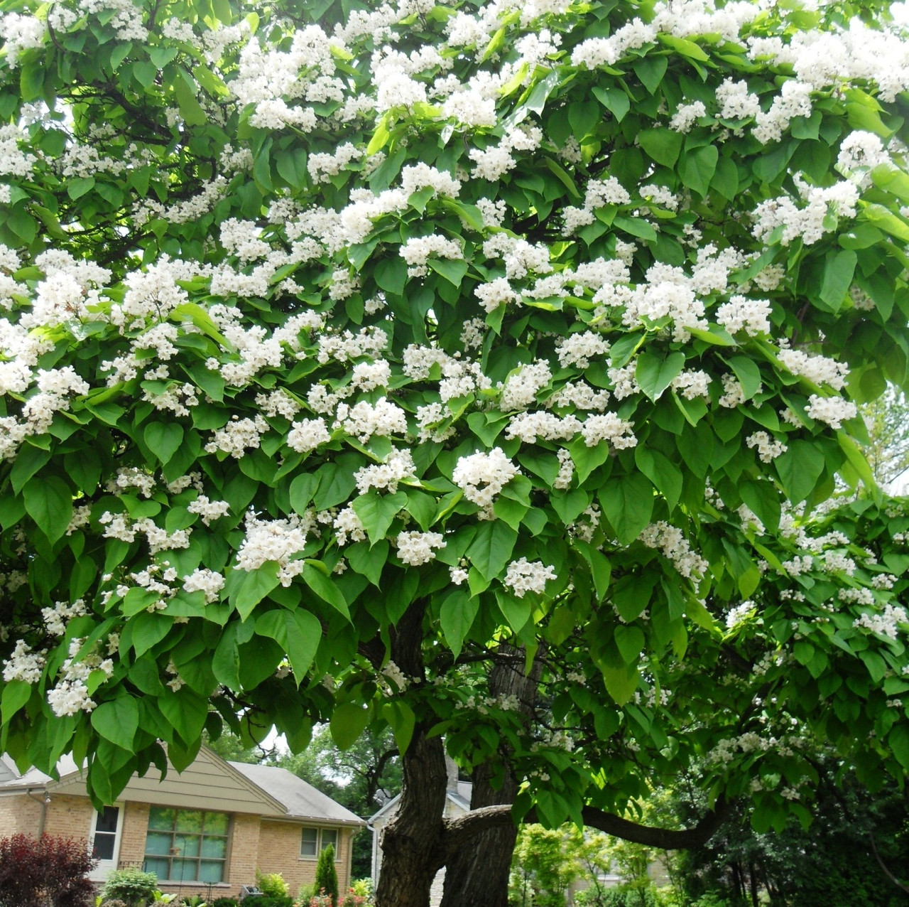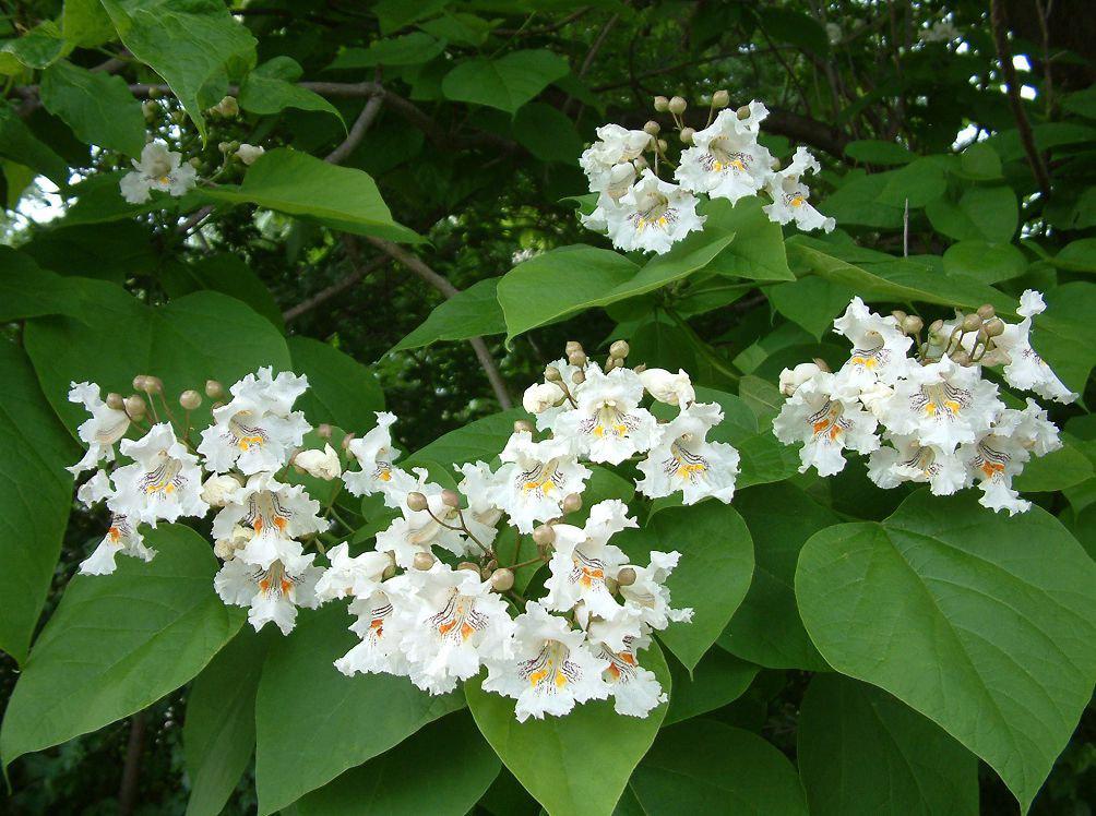 Катальпа “Speciosa” — це величне листопадне дерево з розкішною широкою кроною та величезним серцеподібним листям насичено-зеленого кольору. У червні вона перетворюється на справжню окрасу саду, вкриваючись великими волоттями білосніжних квітів, прикрашених всередині витонченими пурпуровими та жовтими цятками. На відміну від інших видів, сорт “Спеціоза” вирізняється найвищою морозостійкістю та швидким ростом, що дозволяє за лічені роки створити густу тінь. Восени на дереві з’являються довгі декоративні стручки, що надають йому екзотичного вигляду навіть взимку. Це ідеальний вибір для створення тінистих алей, парадних в’їздів або сольних посадок на великих ділянках.