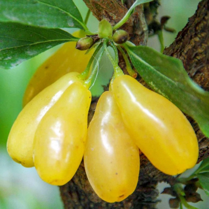 Кизил «Янтарний» — це унікальний великоплідний сорт української селекції, який отримав свою назву завдяки незвичайним плодам яскраво-жовтого кольору. При повному дозріванні шкірка стає майже прозорою, що дозволяє бачити м’якоть і створює ефект справжнього коштовного каменю на гілках. Щеплені саджанці цього сорту цінуються садівниками за дуже швидкий вступ у плодоношення, зазвичай вже на другий або третій рік після посадки. Смак плодів «Янтарного» значно солодший і ніжніший, ніж у традиційних червоних сортів, що робить його ідеальним десертним варіантом для вживання у свіжому вигляді. Рослина формує охайне дерево або компактний кущ із густою кроною, яка напрочуд декоративно виглядає під час раннього весняного цвітіння. Цей сорт демонструє вражаючу витривалість, легко витримуючи сильні морози та тривалі періоди літньої посухи без втрати врожайності. Завдяки високому вмісту пектинів і вітамінів, золотисті ягоди є надзвичайно корисними для здоров’я та ідеально підходять для приготування прозорого медового варення. Для отримання стабільних і щедрих врожаїв рекомендується висаджувати поруч інший сорт кизилу для забезпечення якісного перехресного запилення.