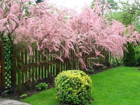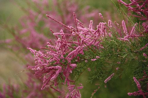 Цвіте тамариксом великими, рожевими, кистевидными суцвіттями.