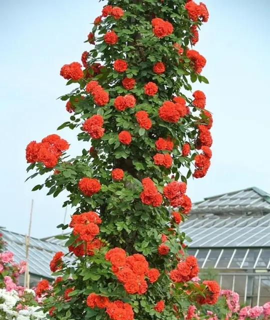 Яскрава плетиста троянда з насичено-помаранчевими квітками, які добре помітні здалеку. Довгі пагони швидко наростають і чудово підходять для озеленення арок, пергол та огорож. Під час цвітіння кущ виглядає дуже ефектно завдяки яскравим квітам і густому листю. Сорт добре підходить для створення вертикальних акцентів у саду. 🌹