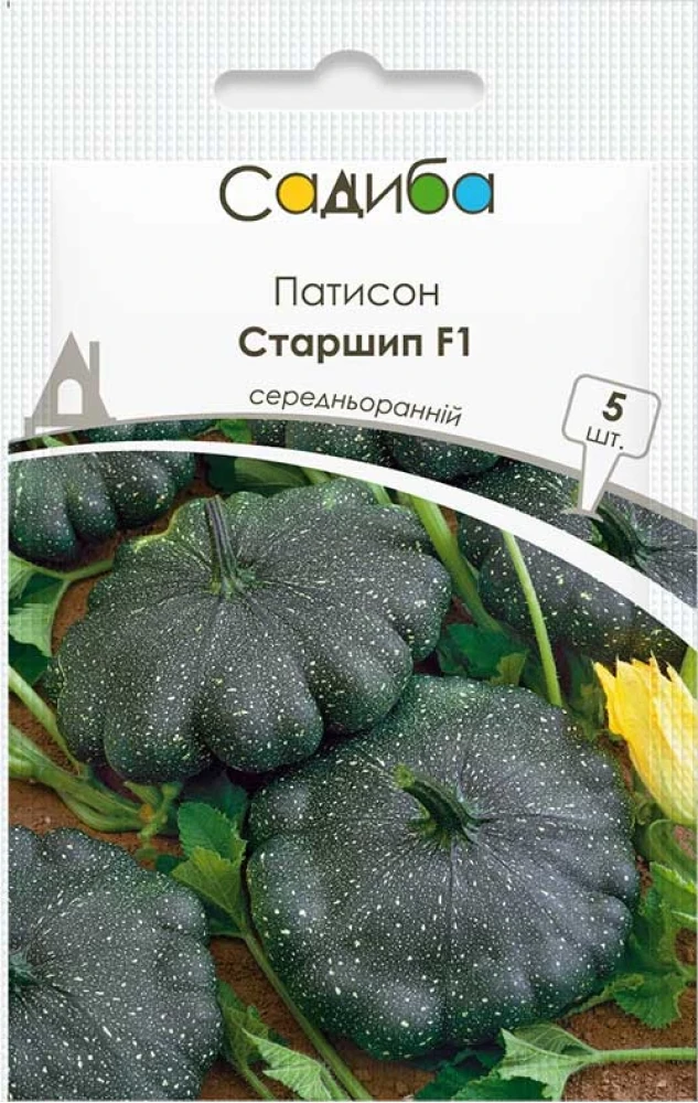 Насіння патисону Старшіп F1 — це ранній високоврожайний гібрид від Syngenta. Рослини формують компактні, потужні кущі з великою кількістю рівних плодів.