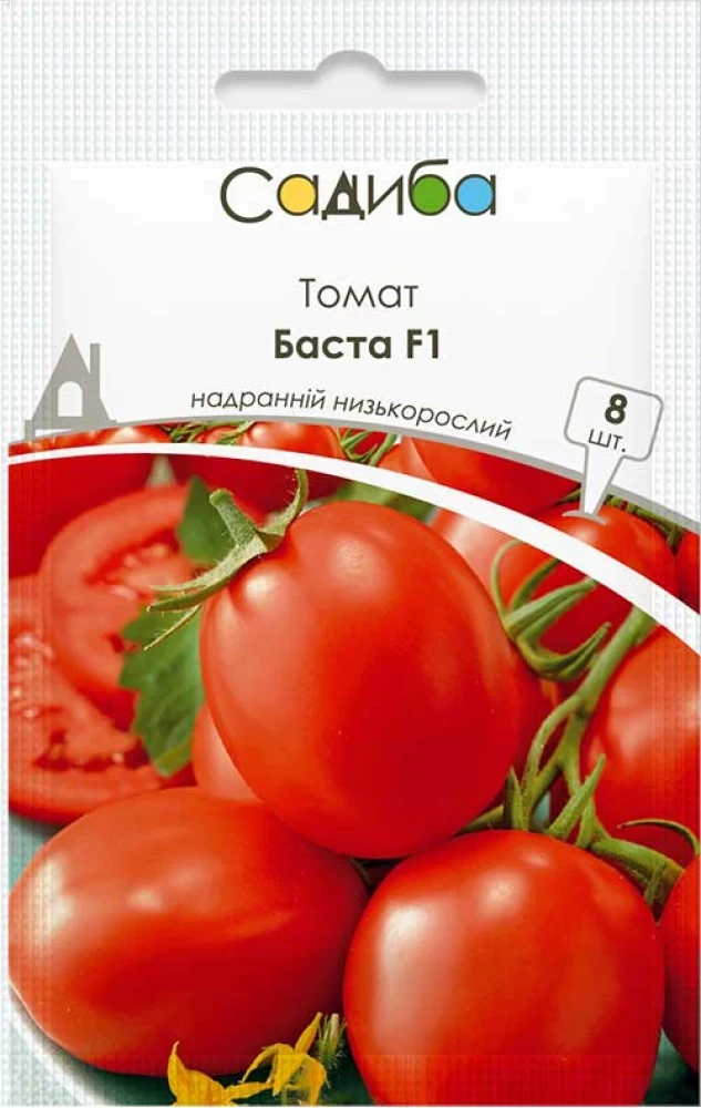 Томат Баста F1 — це гібридний сорт, створений компанією Clause (Франція). Цей помідор має високий урожай та відмінну стійкість до хвороб. Плоди округлої форми, середнього розміру, яскраво-червоні, з чудовим смаком. Відрізняється швидким дозріванням, що дозволяє отримувати врожай уже через 60-65 днів після висадки.