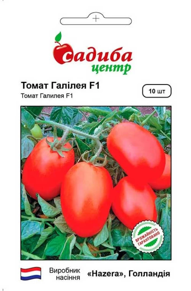 Томат Галілея F1 – новий середньоранній (70-75 днів) висо-коврожайний гібрид детермінантного типу. Рослини надзвичайно потужні, вертикально направлені, з добре розвинутим листковим апаратом.
