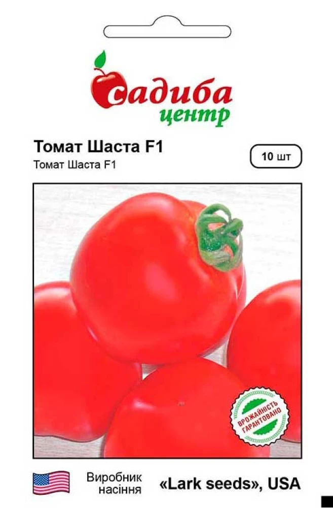 Шаста F1 – ранній гібрид томату детермінантного типу. Починає достигати на 85-90 день після сходів. Плоди формуються округлої форми, масою 65 г, з шкіркою червоного кольору, томат має гарну щільність та високий вміст сухих речовин.