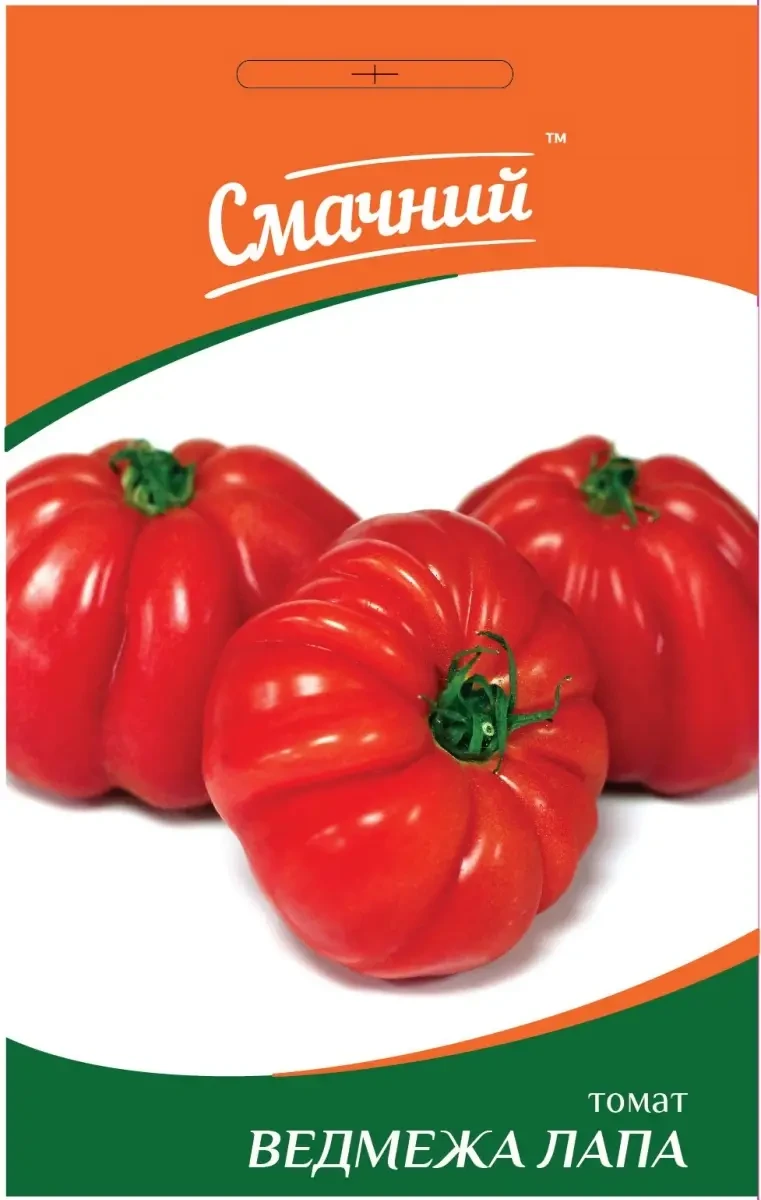 Томат Ведмежа Лапа – середньостиглий, індетермінатний сорт, призначений для відкритого грунту і теплиць. Рослина висотою 1,5 м, сильна, стійке до захворювань.