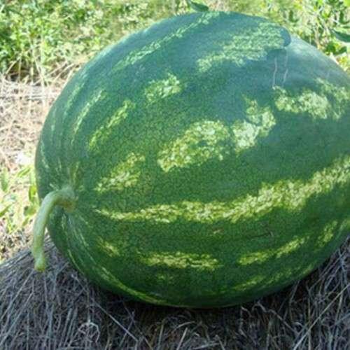 Плоди овальної форми, масою від 10 кілограм. Шкірка темно-зеленого кольору, а м'якоть насиченого яскраво-червоного кольору.